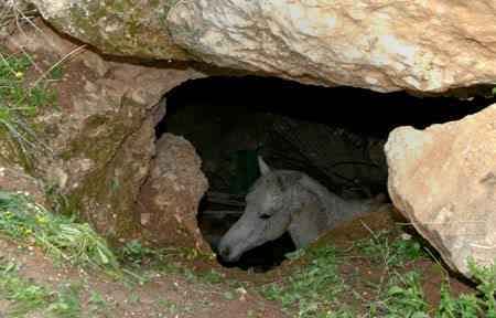 وقع حصان لأحد المزارعين في بئر مياه عميقة ولكنها جافة،